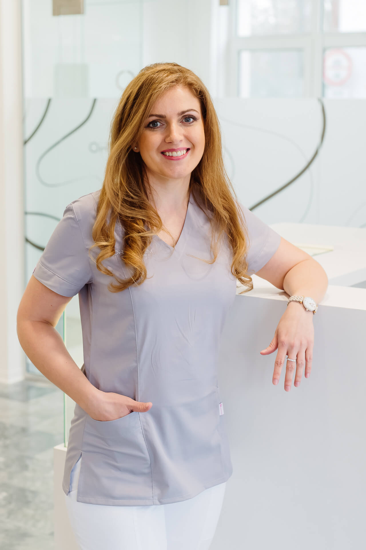 "Som recepčná a vítam vás s úsmevom hneď pri vstupe do našej kliniky. Rada vám pomôžem s objednaním, otázkami aj orientáciou. Teší ma pomáhať pacientom na ceste k ich vysnívanému úsmevu. Mimo práce sa venujem svojej rodine a mám rada prírodu".
