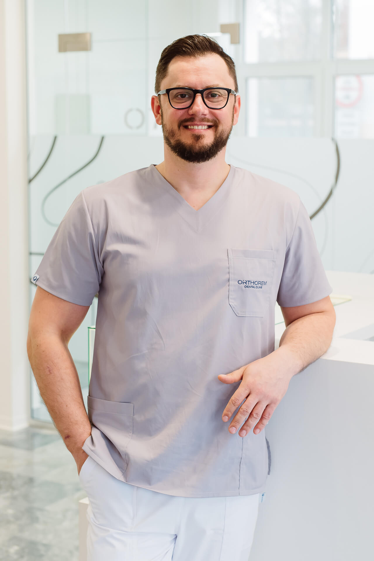 "Ahoj! Som zubný lekár, ktorý má rád svoju prácu aj ľudí. Už 7 rokov pracujem vo firme Orthorem, kde sa každý deň snažím pomáhať pacientom cítiť sa lepšie a sebavedomejšie. Pre mňa je dôležité nielen vyliečiť zub, ale aj to, aby ste sa cítili pokojne, bezpečne a odchádzali s úsmevom. Vždy som otvorený dialógu, vysvetľujem každý krok a pracujem s ohľadom na vaše pohodlie. Vo voľnom čase rád počúvam hudbu a trávim čas s rodinou, ktorá je pre mňa veľkou inšpiráciou a oporou".