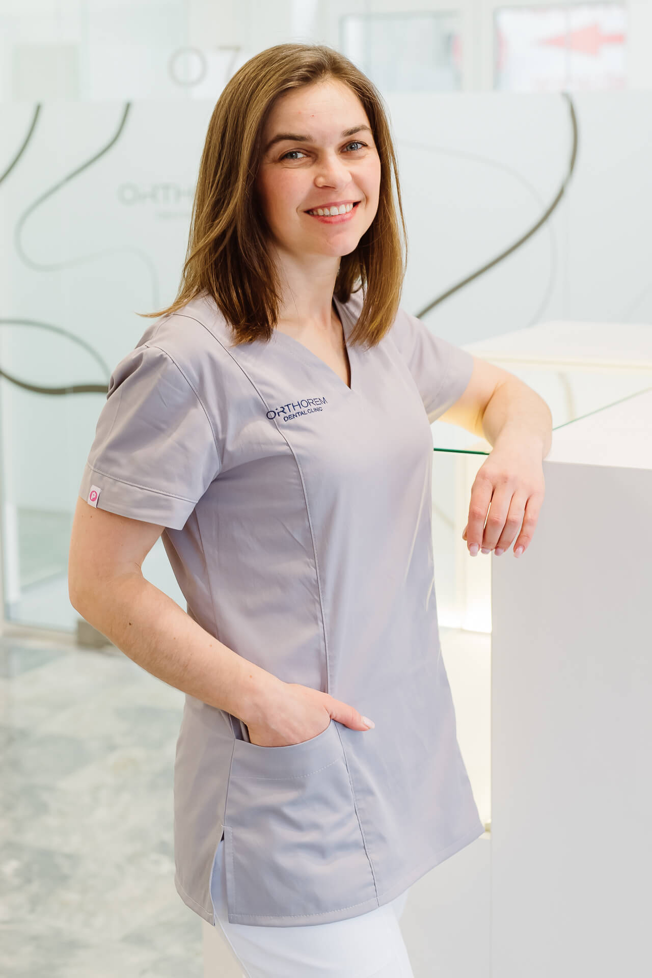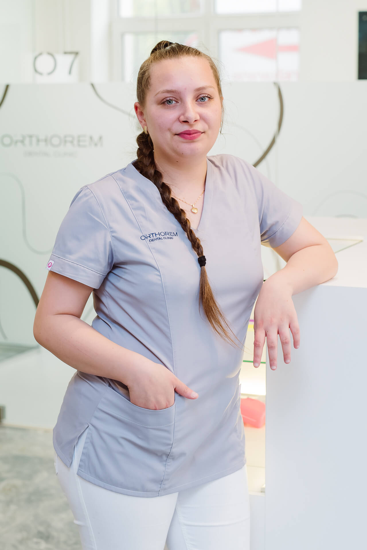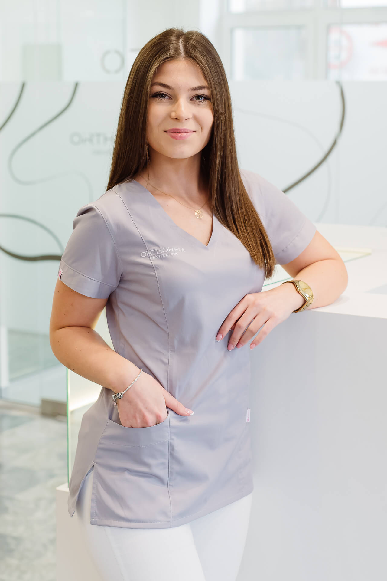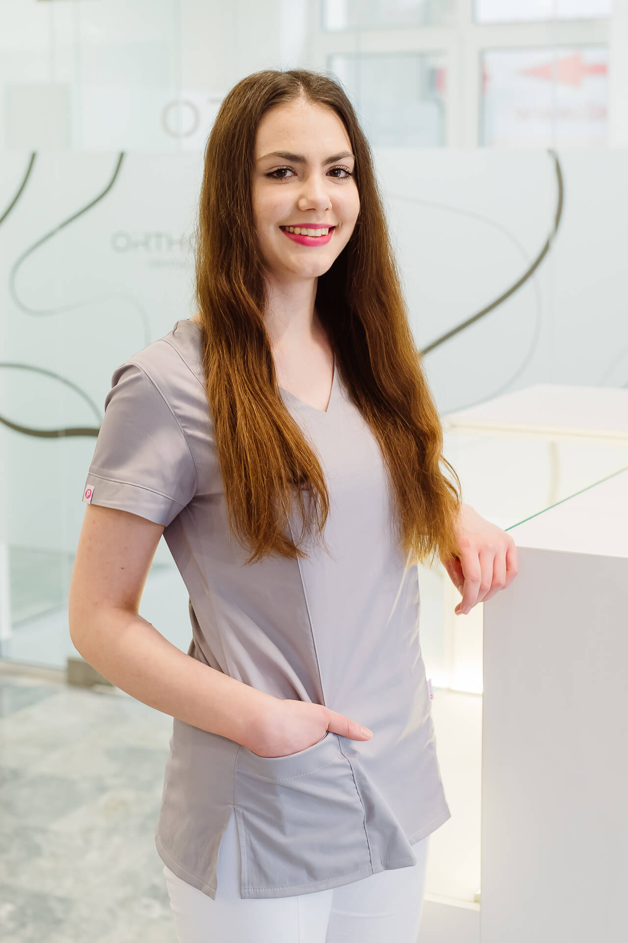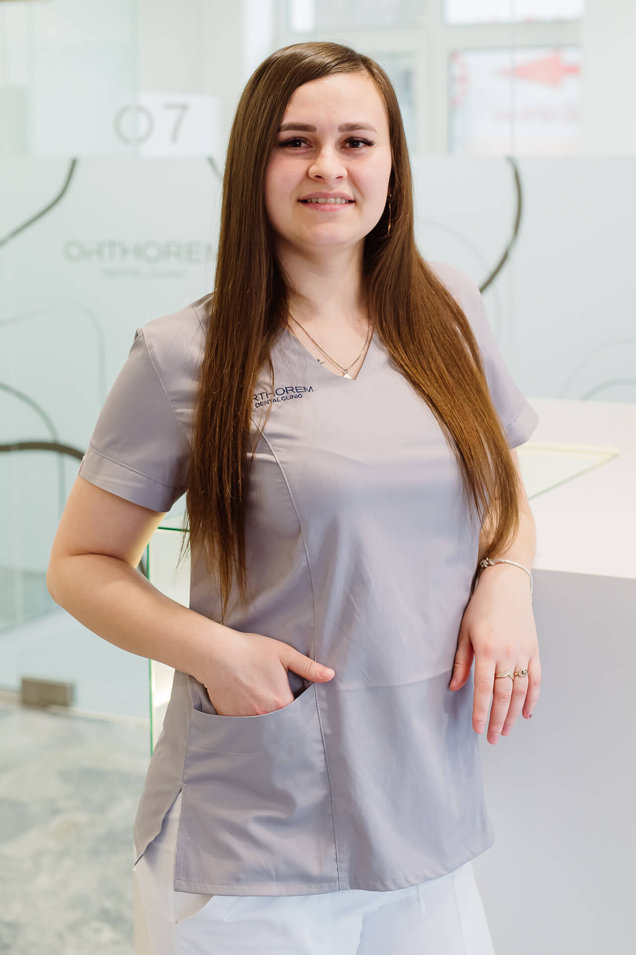"V Orthoreme pracujem od roku 2023 ako zubna asistentka. Na Ukrajine som vyštudovala aj ergoterapeutiku. Rada sa učím nové veci preto som si rozšírila svoje vzdelanie. Som spoločenská a komunikatívna, čo mi umožňuje s ľahkosťou nadväzovať kontakt s ľuďmi. Verím v silu dobra a najviac ma teší, keď môžem prispieť k tomu aby sa ľudia cítili šťastní. Mám rada prírodu, objavovanie nových miest, bicyklovanie, plávanie, divadlo, akcie a vyučovanie cudzích jazykov".