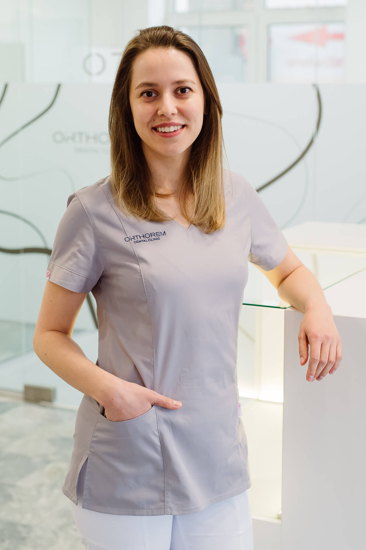 "Som lekárka – čeľustný ortopéd z Ukrajiny. V ORTHOREM pôsobím od roku 2022 a kolektív sa pre mňa stal druhou rodinou. Milujem ortodonciu, pretože prináša ľuďom nielen krásny úsmev, ale aj istotu a sebavedomie. Ku každému pacientovi pristupujem s empatiou a snahou, aby sa cítil čo najviac v pohodlí. Neustále sa vzdelávam a sledujem nové trendy, aby som svojim pacientom prinášala moderné a šetrné riešenia. Najväčšou odmenou je pre mňa radosť v očiach pacienta, keď sa prvýkrát usmeje s novou istotou".